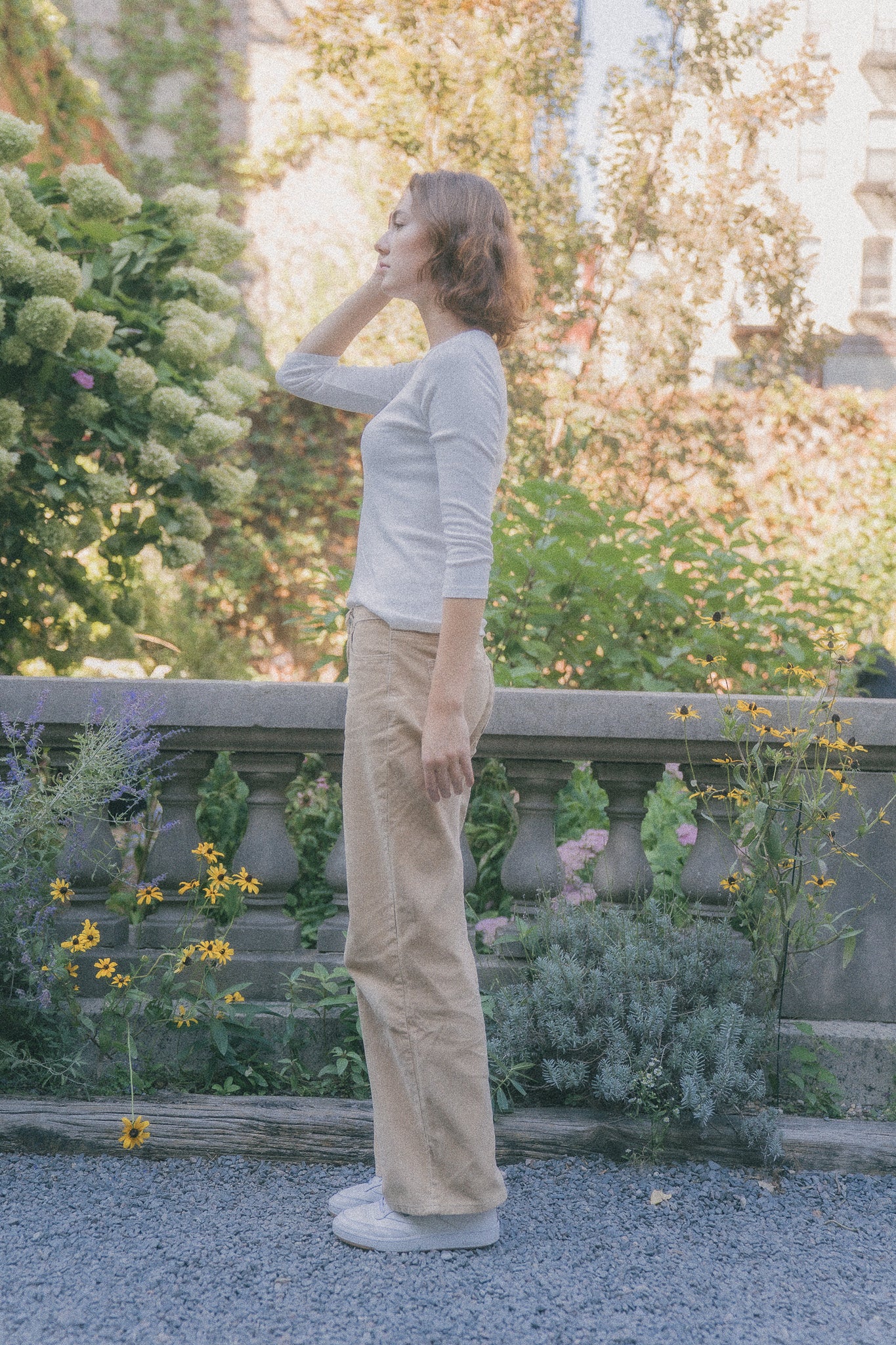 Low rise, flared, straight leg corduroy pants with two pockets on the front and two pockets at the back, and zipper closure.Fabrics: 100% CottonMeasurements: 9" (23cm) rise, 39" (98cm) inseam, 32" (82cm) waist