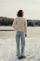 Low rise, flared, straight leg pants with two pockets on the front and two pockets at the back, and zipper closure.