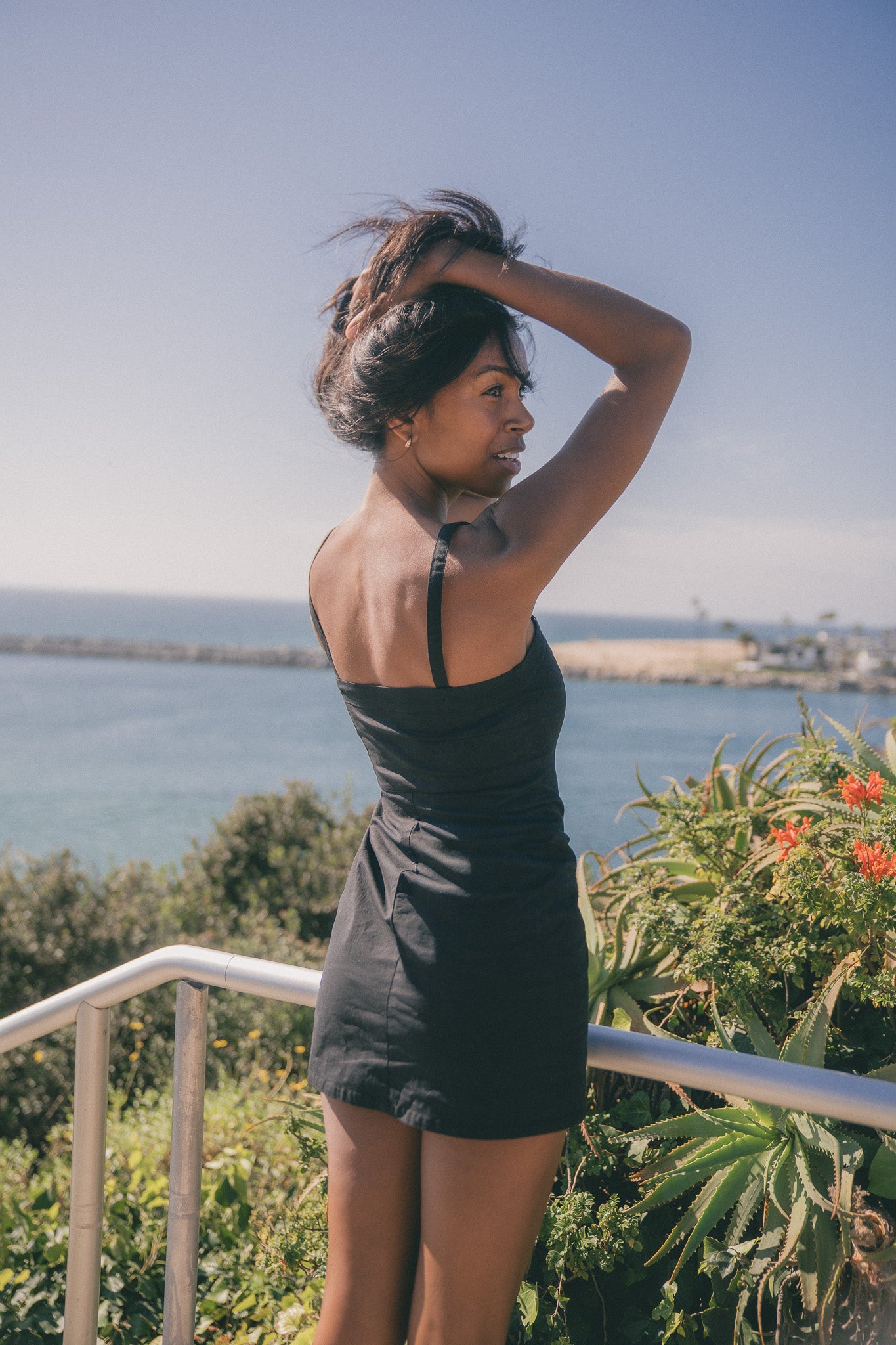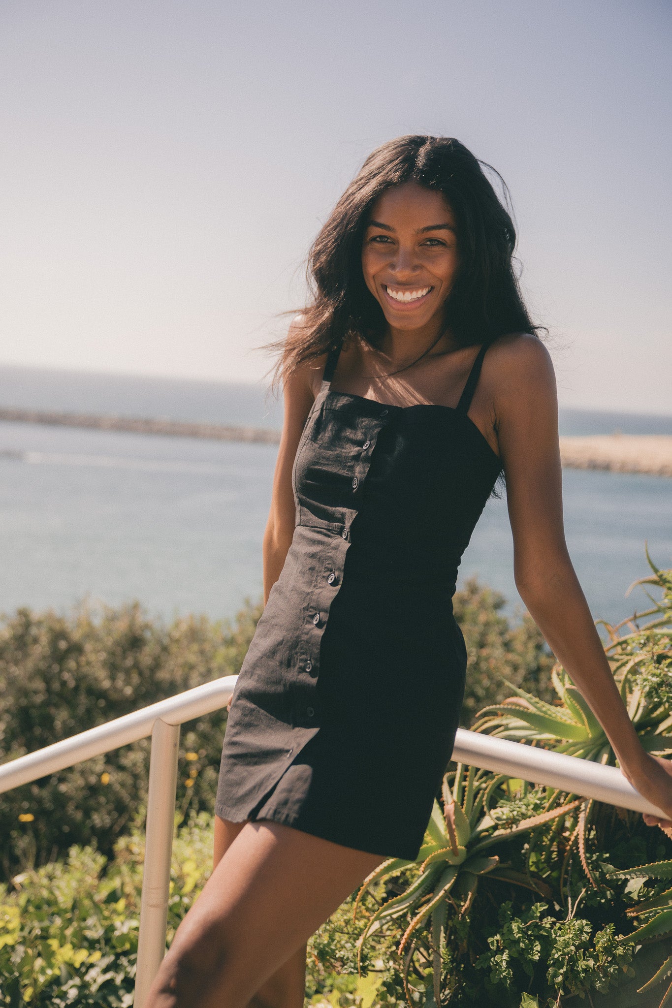 Black mini button up dress with adjustable button straps.Fabrics: 100% cottonMeasurements:S : 26" (67 cm) length, 12" (31 cm) bustM: 33" (84 cm) length, 15" (39 cm) bustMade in: China