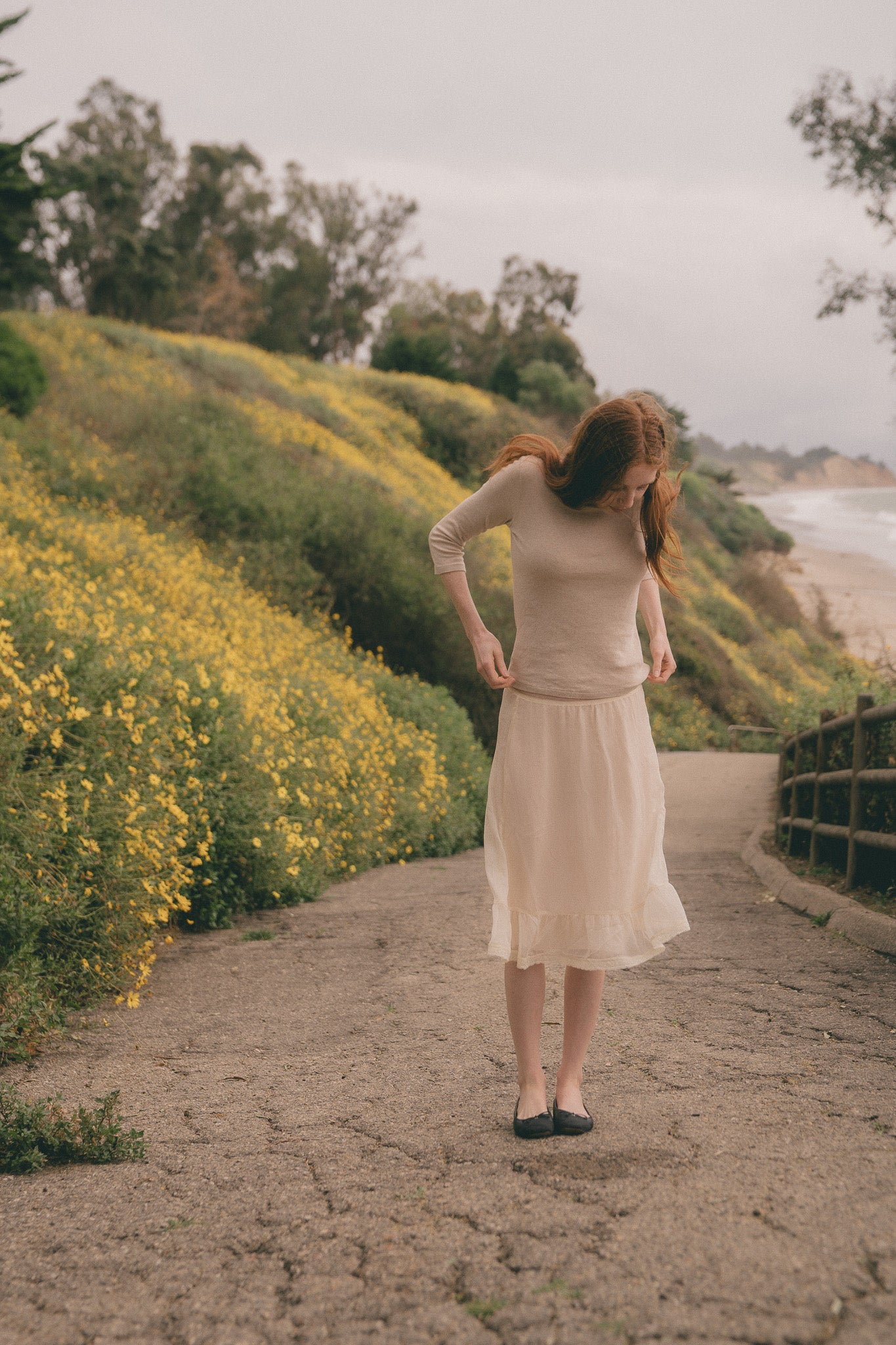 Midi length flowy sheer vintage inspired skirt with inner lining, a stretchy scalloped waist line, and lace trim.Fabrics: 100% PolyesterMeasurements: 15" (38 cm) length, 25" (64 cm) waist (stretches)Made in: China