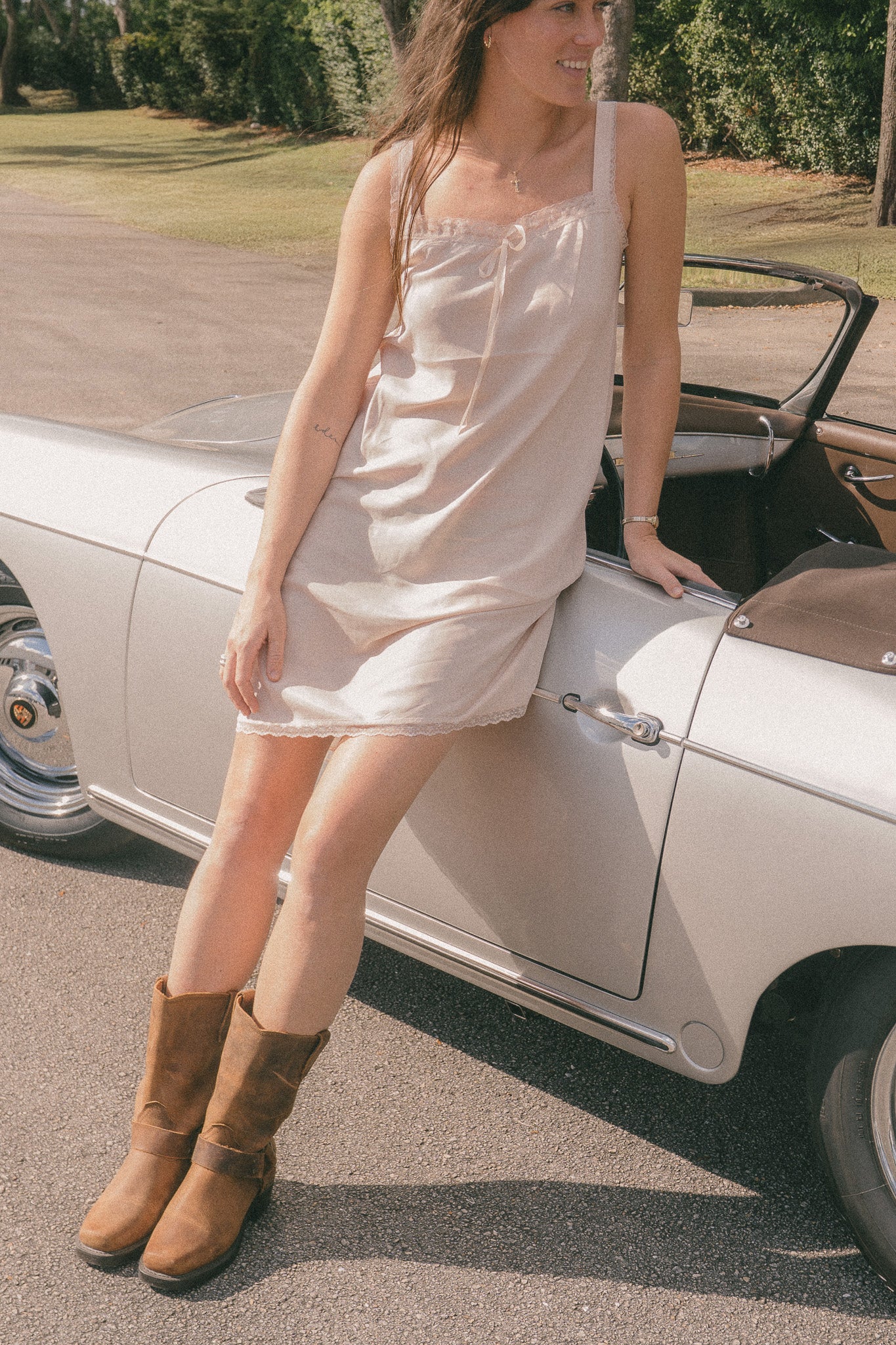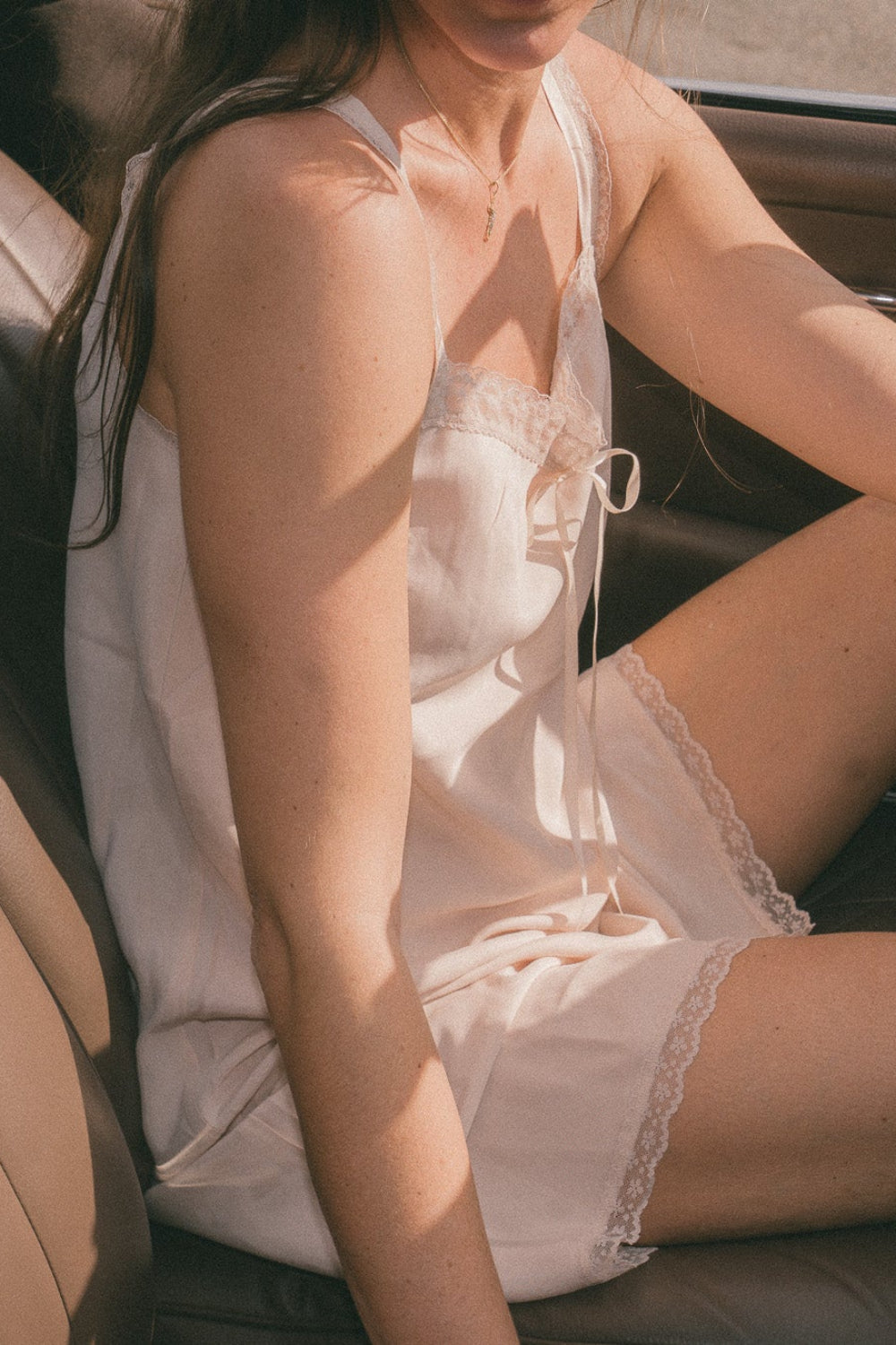 Long slip style dress with a lace trim and bow on the bust.Fabric: 66% Cupro, 30% Viscose, 4% Elastan-SpandexMeasurements: 32" (84cm) length, 15" (38cm) bustMade in: China
