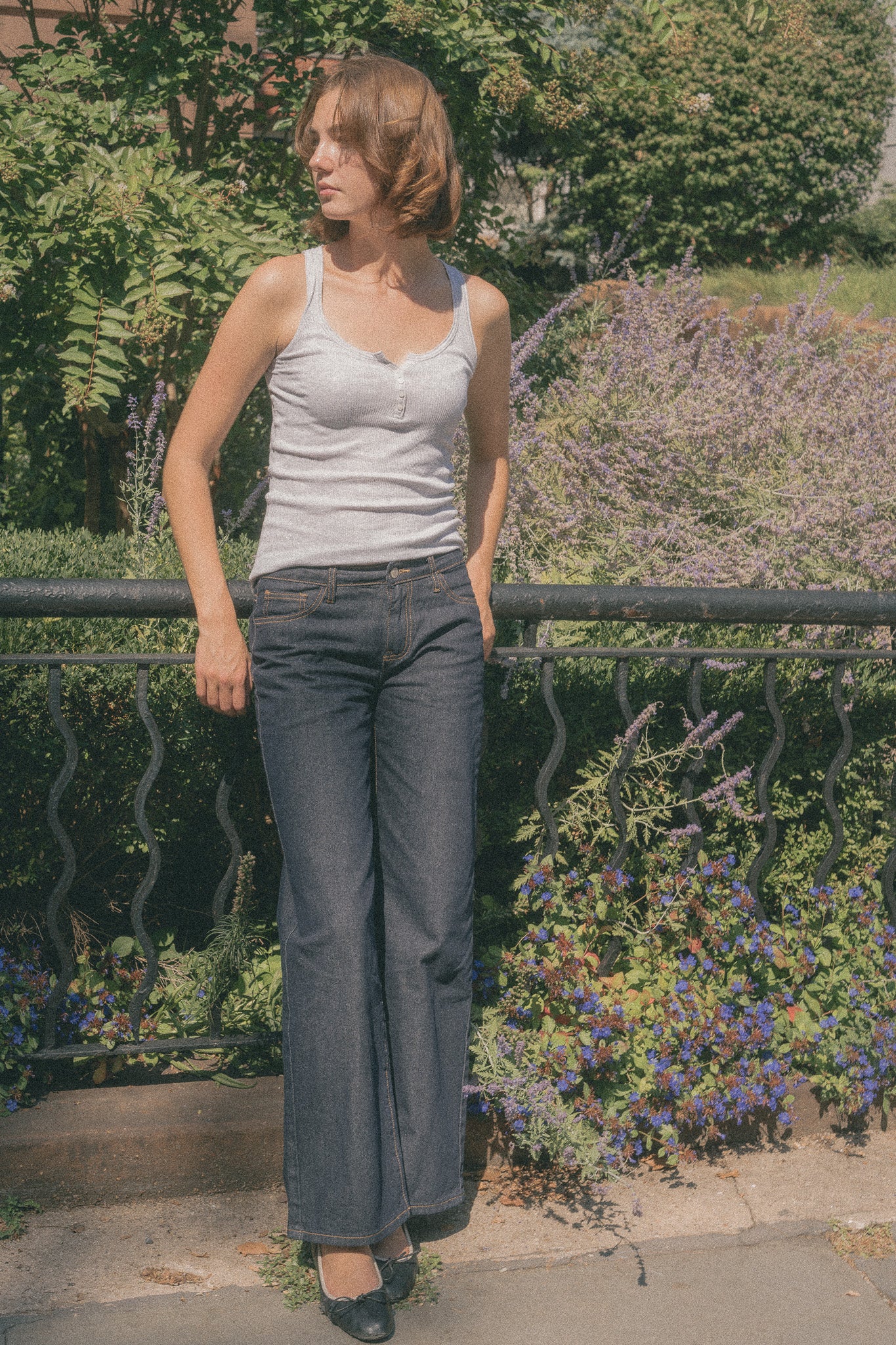 Soft ribbed cotton tank with a scoop neck and 5 buttons.