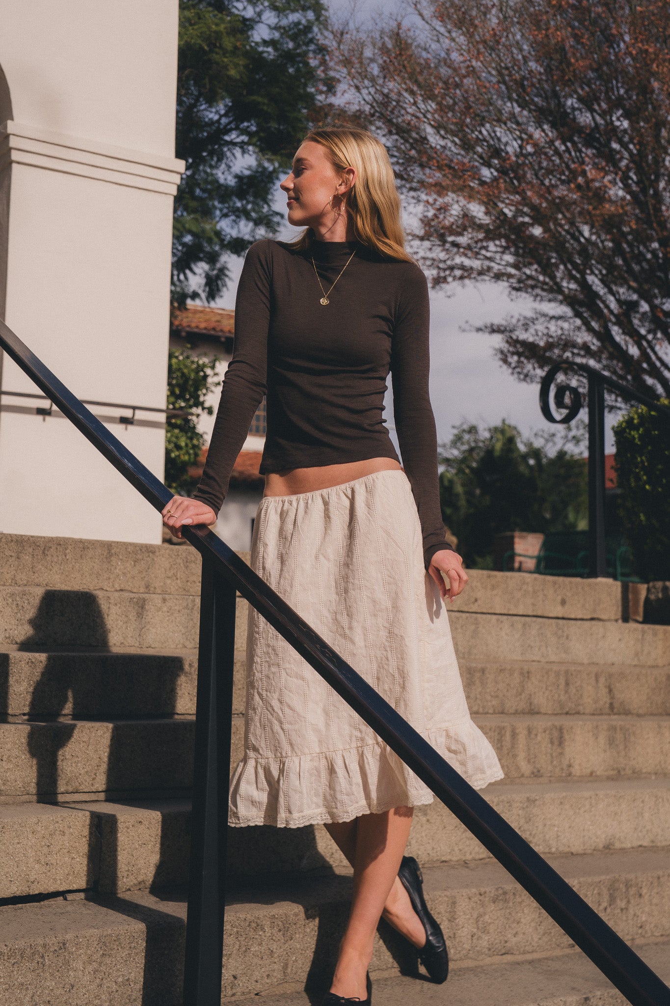 Fitted long sleeve turtleneck top in light weight cotton.
